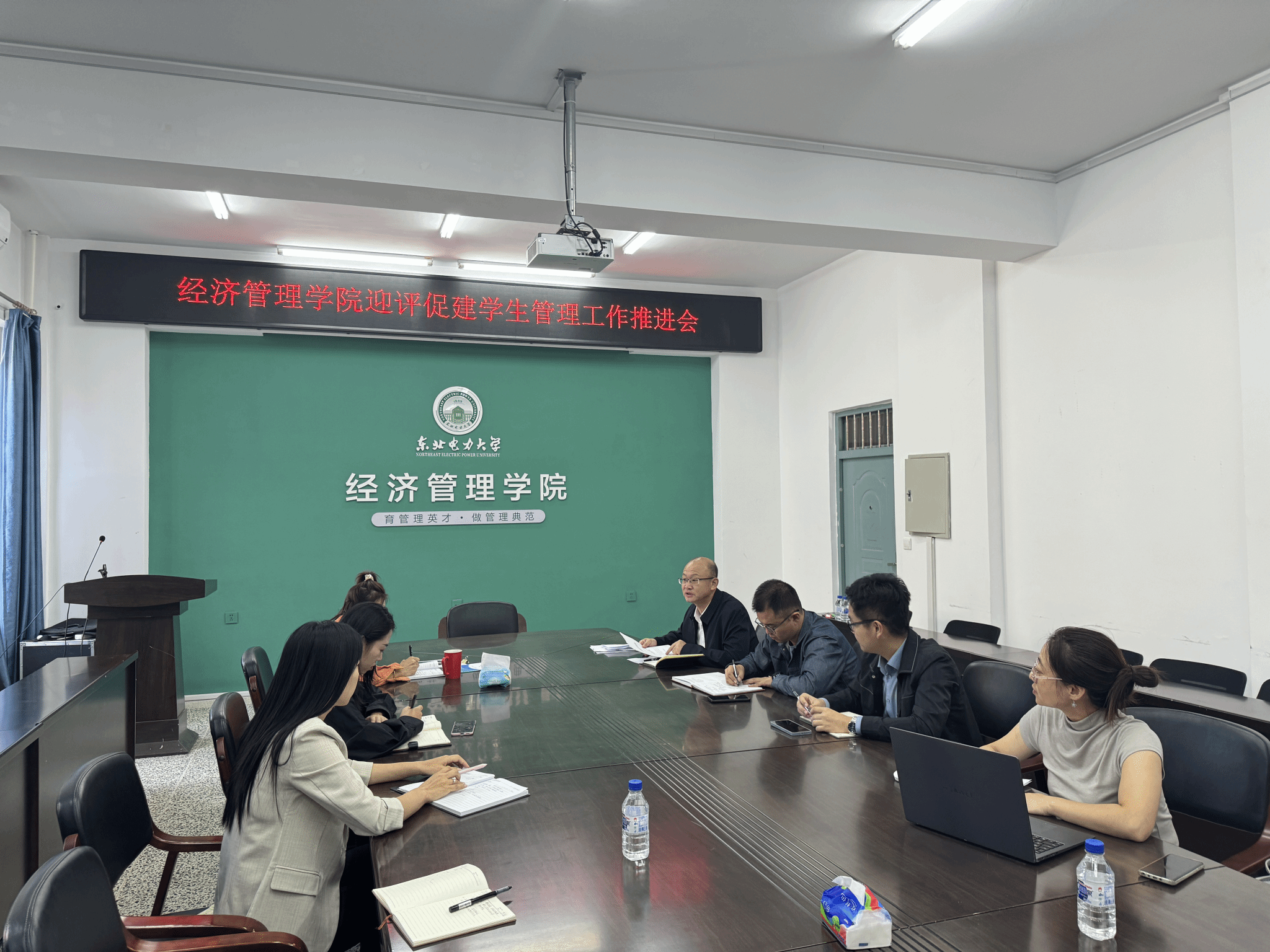 于9月13日上午,在三教D202会议室召开了迎评促建学生管理工作推进会。党委书记梁巍主持会议并讲话,副院长王昕、学生工作办公室全体教师参加会议。