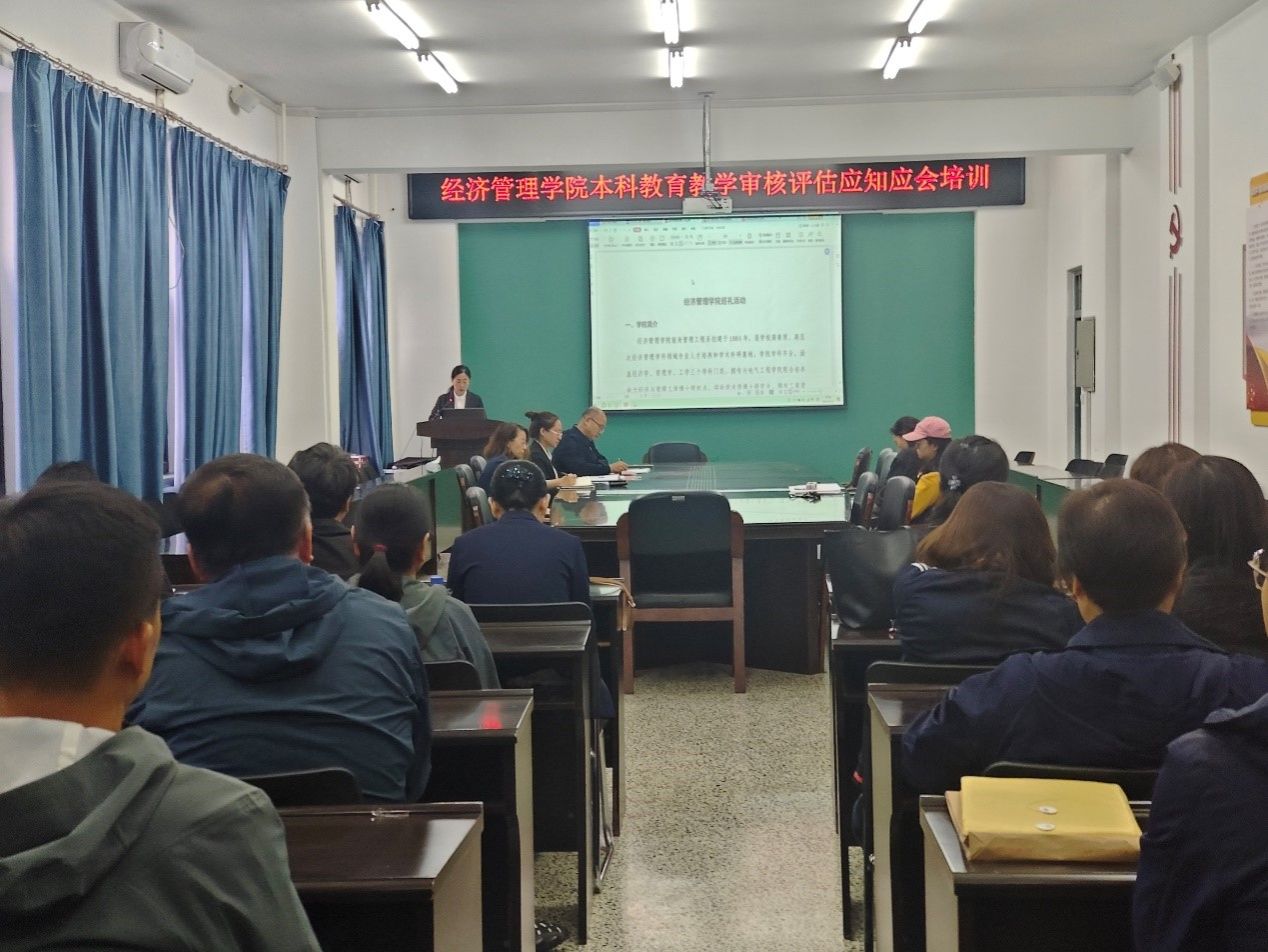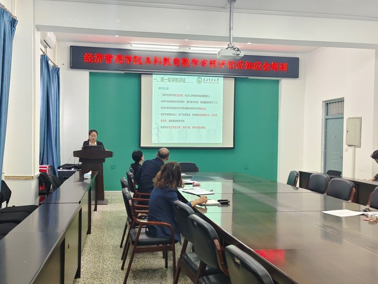 王昕副院长组织全体教师共同学习了《应知应会》文件内容,就新一轮审核评估的指导思想、评估特点、评估程序、教师需要准备的工作与职责、校情和院情及相关制度等方面做了详细的解读。